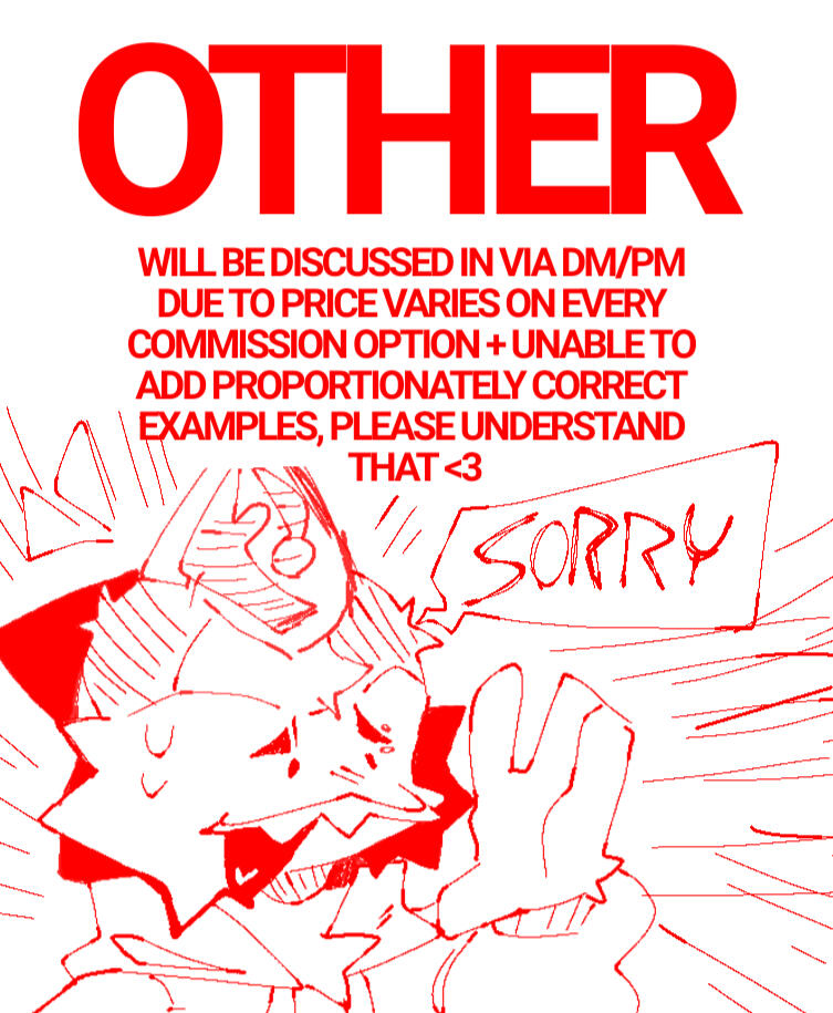 Brief list of my commission prices, contact me either on discord or twitter for commissioning me (FYI im more active on discord so i will respond quicker if contacted there)